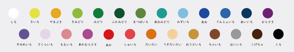 アプリでは、赤や黄色などの基本の色に加えて、日本語ならではの色が並ぶ26色から選びながら、色の感性が自然と身についていきます。